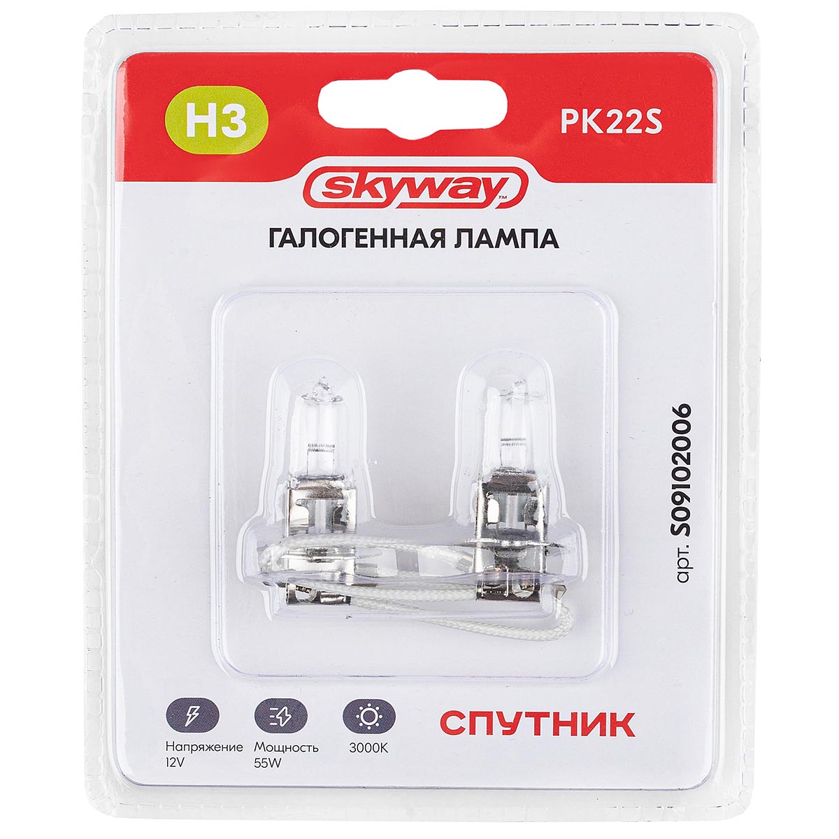 Автолампа H3 12V 55W 1-конт 1450Лм 3000К СПУТНИК SKYWAY блистер 2 шт - автолампа Н3 - одна из самых популярных автомобильных ламп, используемых в большинстве автомобилей. Цоколь H3 обычно используется в противотуманных фарах и в фарах ближнего света.