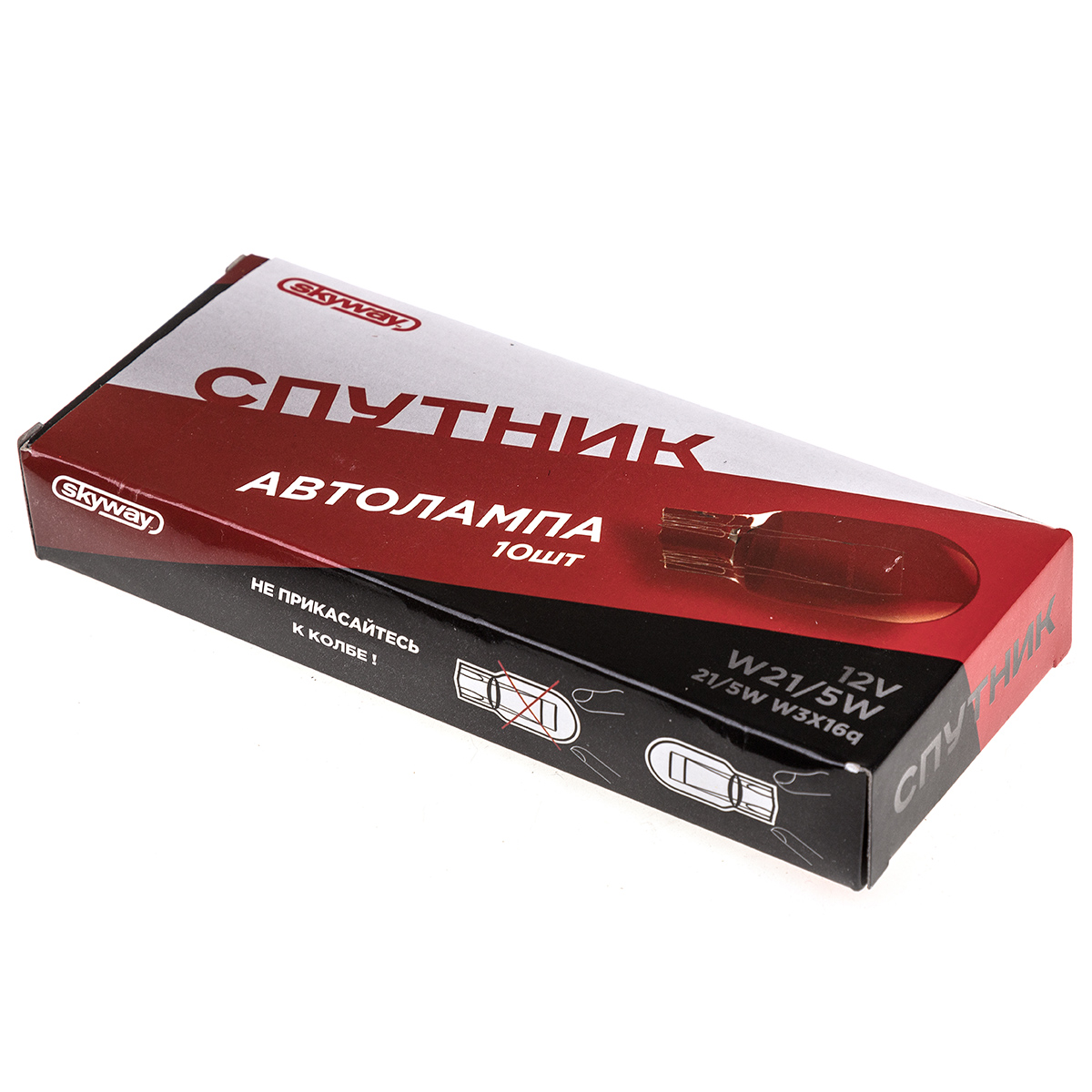 Автолампа W21/5W 12V 21/5W W3*16q СПУТНИК SKYWAY - двухнитиевая автолампа с максимальной мощностью 21/5W применяется для подключения стоп-сигналов и габаритных огней и пр. Автолампа безцокольная с двумя нитями. Обладает экономичным энергопотреблением, устойчива к вибрациям и скачкам напряжения. Обеспечивает яркий насыщенный свет. Лампы устойчивы к частому включению и выключению.