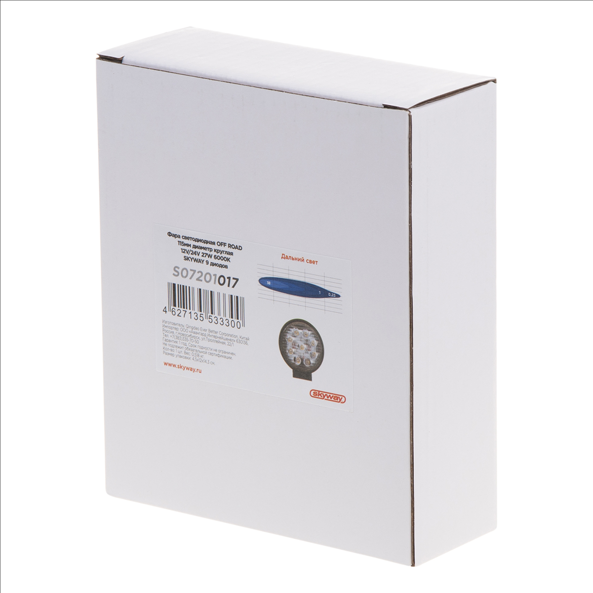 Фара светодиодная OFF ROAD 113*113(128)*25мм круглая 12V/24V 27W 6000K SKYWAY 9 диодов Дальний свет - фара с направленным светом имеет круглую форму и 9 диодов, которые обеспечивают яркое и равномерное освещение в пути. Светодиодная фара категории OFF ROAD: безопасный и надежный вариант в прочном алюминиевом корпусе с линзой из оргстекла. Фары выдерживают любые вибрации и останутся невредимыми даже при сильной тряске. Обеспечивают ровное освещение дороги. Светодиод отличается долгим сроком службы и высоким качеством.