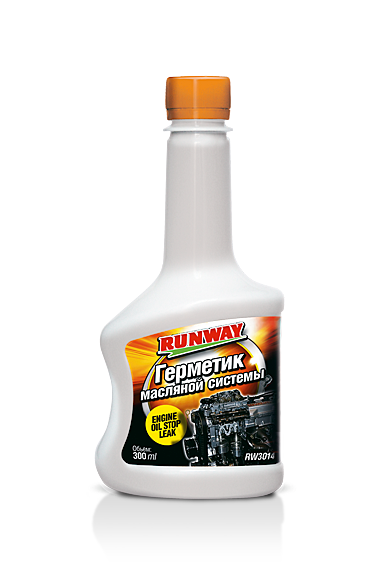 Герметик масляной системы RUNWAY - ликвидирует течи моторного масла через прокладки, сальники и другие уплотнители, в следствии их старения, деформации, затвердевания и растрескивания. Восстанавливает эластичность и геометрические размеры сальников и прокладок. Совместим со всеми типами моторных масел. Применение: pалейте содержимое флакона в маслозаливную горловину двигателя прогретого до рабочей температуры. Запустите двигатель и дайте ему поработать 15-20 минут на холостом ходу. Полное устранение протечек происходит через 24-48 часов.