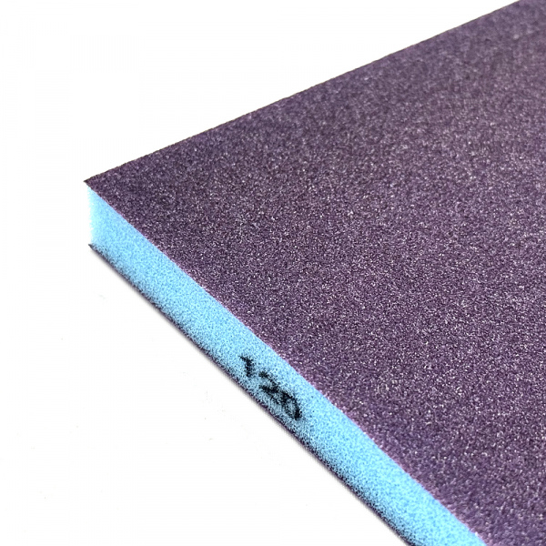 Абразивное зерно нанесено на две стороны губки, что улучшает эргономику и эффективность использования при шлифовании поверхностей со сложным рельефом.
