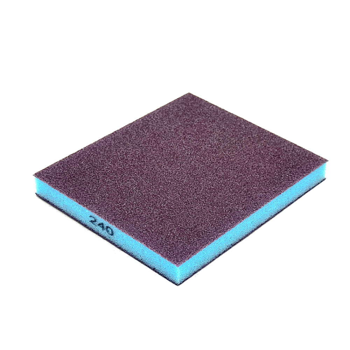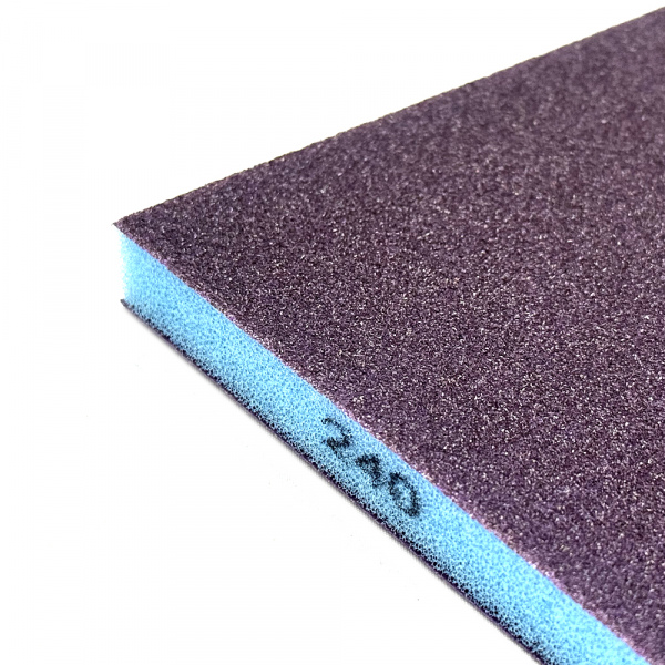 Абразивное зерно нанесено на две стороны губки, что улучшает эргономику и эффективность использования при шлифовании поверхностей со сложным рельефом.