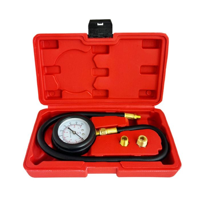 В комплект входят манометр; шланг 600 мм; адаптер 1/4; адаптер 3/8; пластиковый кейс.