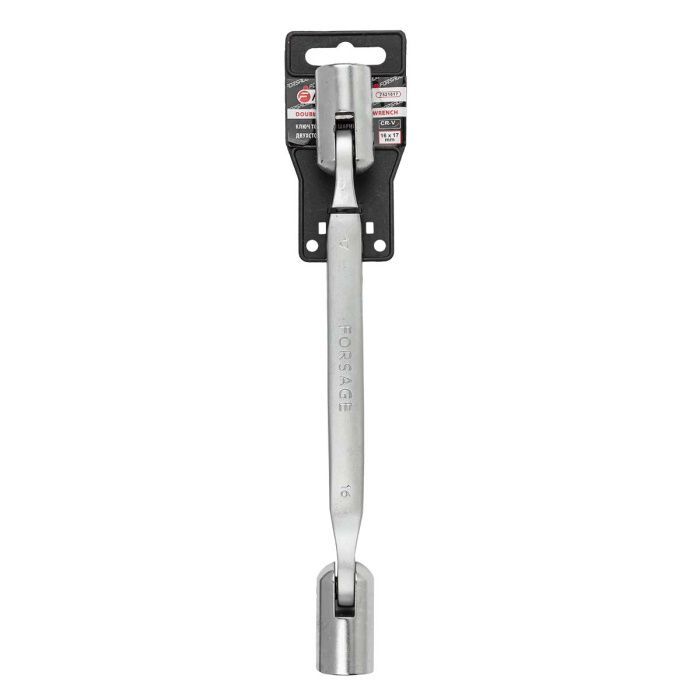 Ключ торцевой шарнирный двухсторонний 16х17 мм представляет собой неразборный вариант привода и удлинителя с шарнирной двенадцатигранной торцевой головкой (угол наклона 180°). Предназначен для эффективного использования и передачи значительного усилия при работе в труднодоступных местах. Поворот торцевой головки параллельно телу ключа позволяет быстро отворачивать и заворачивать крепёж, когда не требуется приложение большого усилия. Ключ изготовлен из хромованадиевой стали, что обеспечивает высокую прочность и устойчивость к коррозии. Шарнирный механизм позволяет быстро и легко поворачивать ключ в любую сторону, что особенно полезно при работе с крепежами в труднодоступных местах.