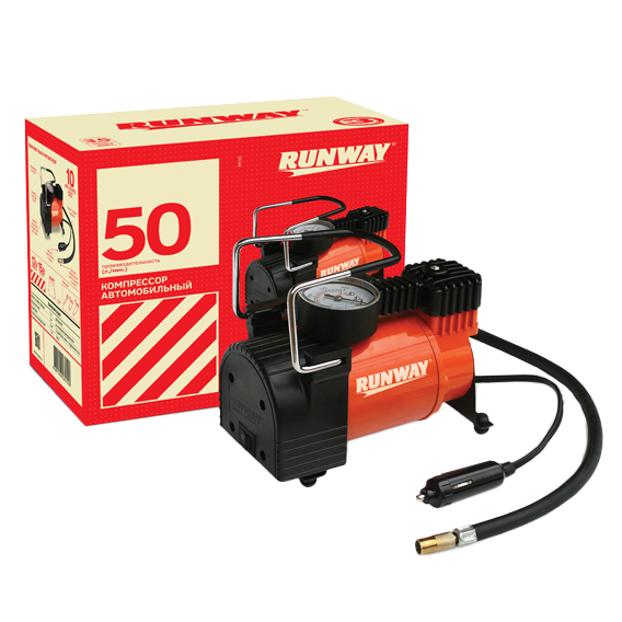 Автомобильный компрессор RUNWAY RR150 предназначен для накачки автомобильных и велосипедных шин, матрасов, моторных лодок и других надувных изделий из резины.