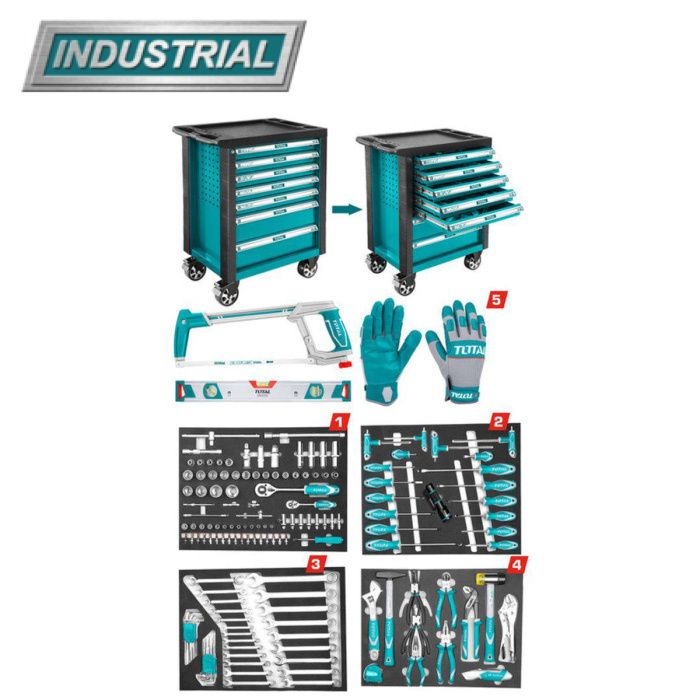 - Упаковано в металлической передвижной инструментальной тележке с выдвижными секциями.