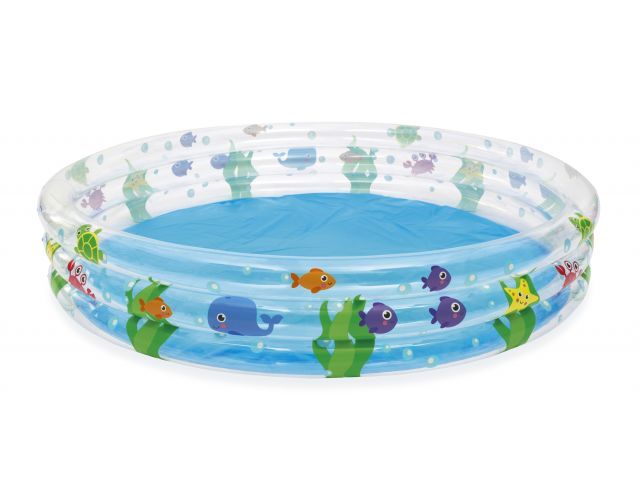 Размер бассейна, см: 183х33 Объем, л: 282 Высота борта, см:33 Материал: ПВХ Возраст: 2 Надувное дно: нет Надувной круглый бассейн Bestway Подводный мир предназначен для детей от 2 лет. Изготовлен из высококачественного винила, устойчивый, надежный и безопасный. Имеет мягкие стенки с широкими бортиками и жесткое дно из ПВХ-пленки. Бассейн быстро надувается и устанавливается на любой ровной поверхности. Бассейн Рем.помплект