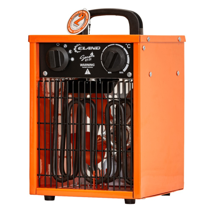 • Мощность 2200 Вт подходит для эффективного обогрева помещений объёмом до 25 м³.