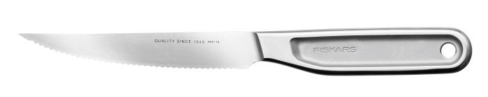 Нож для томатов Fiskars All Steel 12 cm (1062888) идеально подходит для нарезки овощей и фруктов с нежной кожицей. Ножи из линейки All Steel сочетают в себе материалы превосходного качества с непревзойденной функциональностью. Изготовлен из японской высокоуглеродистой стали для отличной производительности и долговечности. Оптимально сбалансирован для высочайшего качества резки. Отлит из цельного куска нержавеющей стали. Заточка рекомендуется с помощью точилки Fiskars Roll-Sharp™ или точильного камня.