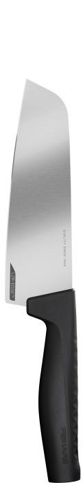Нож Santoku Fiskars Hard Edge 16 cm (1051761) его лезвие обычно короче, чем у кухонного ножа, а также имеет совершенно другую геометрию. В переводе слово Сантоку означает «нож трех добродетелей». Небольшой вес, тонкое лезвие и широкое острие позволяют резать очень узкие и мелкие формы. Вы оцените нож Fiskars Santoku Hard Edge особенно при нарезке лука, помидоров и других овощей, например для салатов, также он подходит для приготовления мяса, рыбы или шинковки зелени. Лезвие ножа Fiskars Hard Edge изготовлено из прочной нержавеющей стали и заточено по специальной технологии LZR-EDGE™. Благодаря такой обработке ножи остаются острыми в 4 раза дольше, чем другие ножи. Великолепная эргономичная рукоятка ножа Hard Edge покрыта материалом Softouch™ с трехмерным рисунком поверхности для надежного и удобного хвата. За ножом легко ухаживать, его можно мыть в посудомоечной машине. При необходимости его можно легко заточить точилкой или точильным камнем.