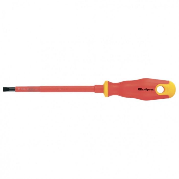 Отвертка диэлектрическая SL6,5x150 мм. CrV, до 1000 В, двухкомпонентная рукоятка Сибртех 12935, описание: