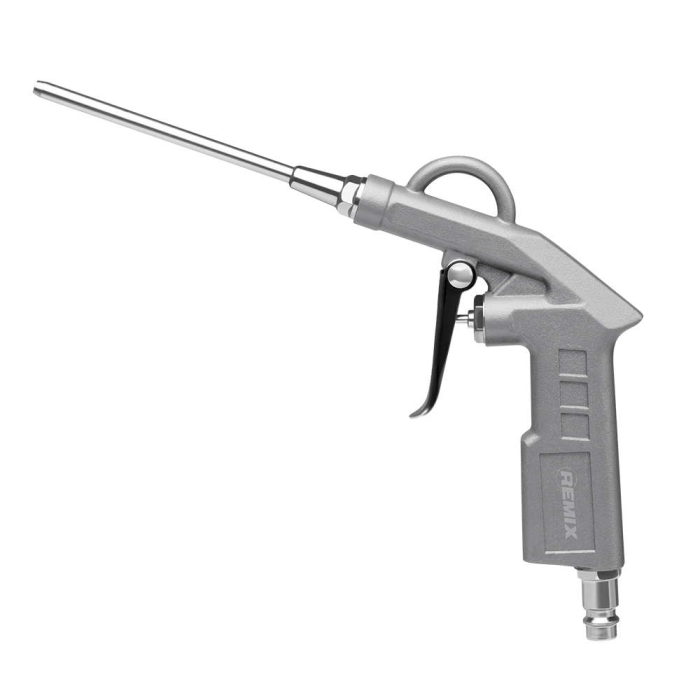 Продувочный пистолет REMIX DG-10B эффективно очищает различные поверхности путем сжатого воздуха. Применяется для прочистки труб, шлангов небольшого диаметра, труднодоступных полостей, различных фильтров, удаления с деталей и узлов остатков пыли, стружки или масла.