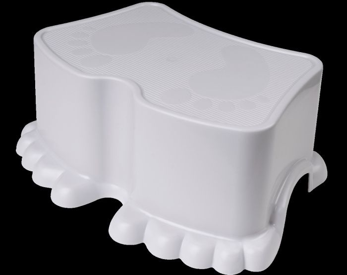 Рельефный узор в виде забавных пяточек, защитит ножки малыша от скольжения по поверхности табуретки-помощника.