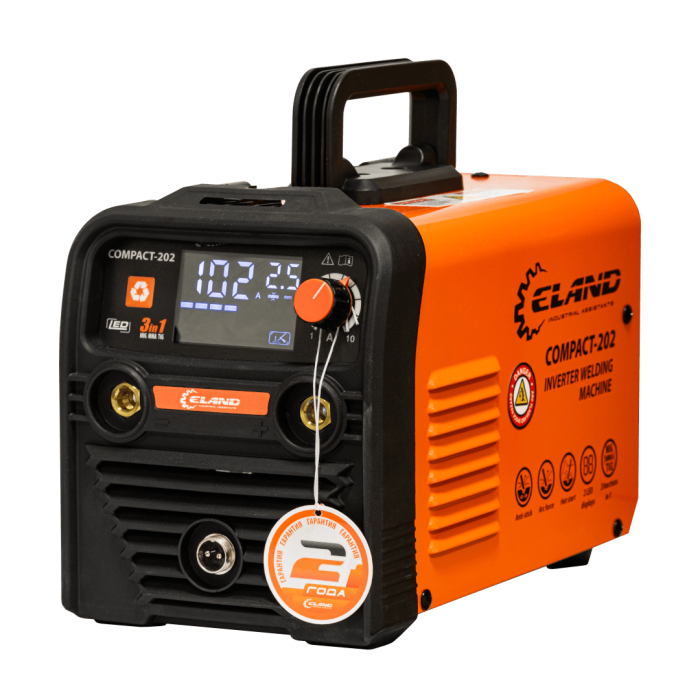 ELAND COMPACT-202 - компактный cварочный полуавтомат с микропроцессорным управлением инверторного типа 3 в 1 (MIG/MAG/FLUX/MMA).