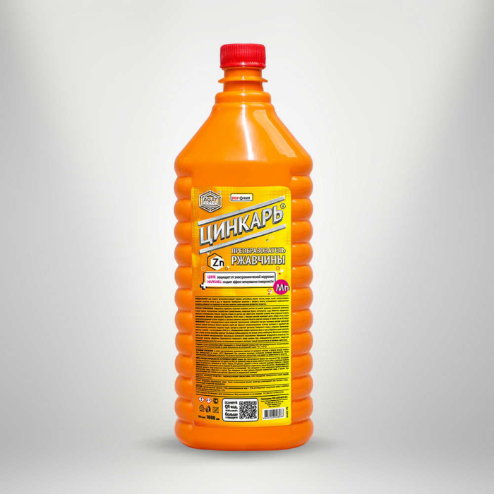 ЦИНКАРЬ предназначается для обработки металлических поверхностей с целью удаления, а правильнее сказать преобразования коррозионных поражений (ржавчины) и защиты обработанных поверхностей от последующих атмосферно-климатических воздействий. Обработка осуществляется перед покраской или нанесением других защитных покрытий. Активные компоненты – ЦИНК и МАРГАНЕЦ, фосфаты которых образуют на поверхности металла прочное защитное покрытие. ЦИНК защищает от электрохимической коррозии. МАРГАНЕЦ создает эффект легирования поверхности.