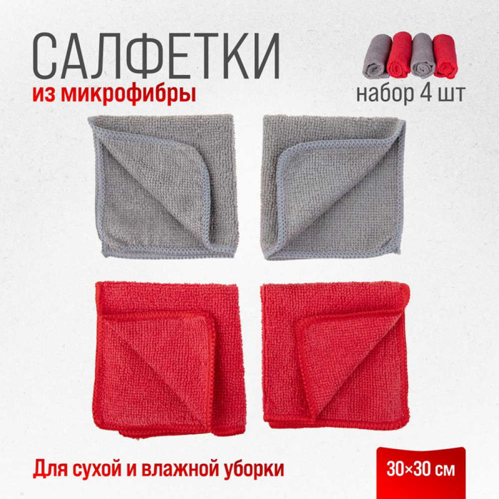 Салфетка набор микрофибра SKYWAY 30*30см прямоугольники 4 шт - универсальная салфетка для дома и автомобиля. Большие размеры пушистых салфеток самого популярного махрового плетения прекрасно справятся с грязью, пылью, впитают большой объем воды, масла, жиры. Поверхность после протирки микрофиброй становится идеально чистой и сухой. Прочная и износостойкая.