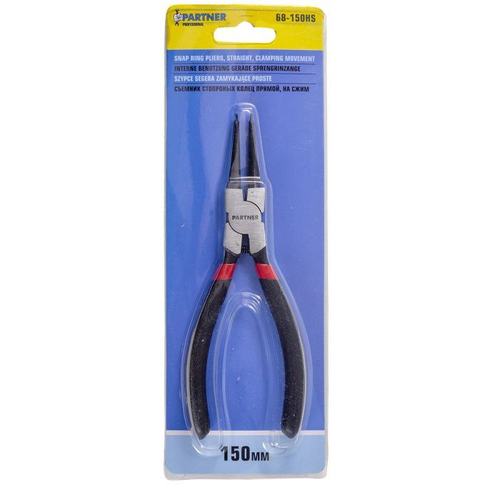 Съемник для внутренних стопорных колец позволяет быстро осуществлять демонтаж и монтаж пружинных колец. Работает на сжатие. Имеет удобные эргономичные прорезиненные ручки. Снабжён возвратной пружиной. Рабочие захваты имеют прямую форму и утоньшения для удобства использования. Защищён от коррозии Съёмник изготовлен из хромованадиевой стали (CrV) с фосфатным покрытием. Общая длина съёмника в сжатом состоянии составляет 150 миллиметров.
