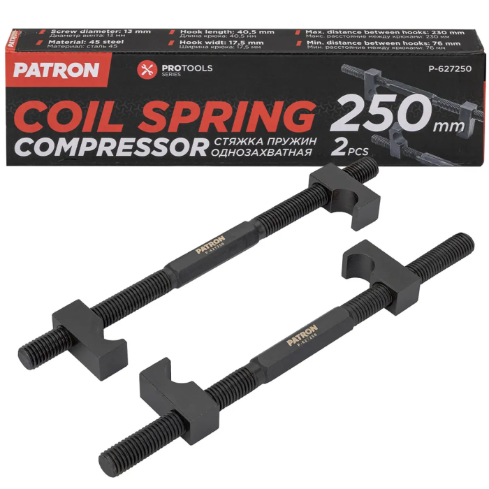 Стяжка пружин однозахватная 250 мм, 2 шт PATRON P-627250