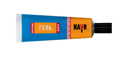 Клей NAVR гель, предназначен для применения в быту для комбинационного склеивания мягкого и жесткого поливинилхлорида, полистирола, оргстекла, фарфора, керамики, стекла, дерева, металла, резины, кожи, пробки, ткани, поролона, бумаги, картона и представляющий собой раствор полиуретановой термопластичной смолы и модифицирующих добавок в органических растворителях. Не оставляет заметных следов при склеивании.