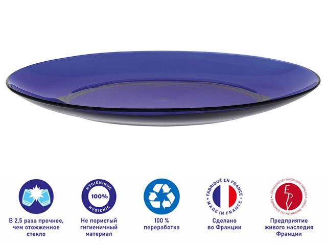 Тарелка обеденная Lys из сверхпрочного закаленного стекла от ТМ Duralex - надежный помощник в приготовлении любимых рецептов. Трендовый цвет "сапфир" создаст настроение и добавит яркости. Ударопрочное стекло обеспечивает привлекательный внешний вид и устойчиво к появлению царапин. Салатники компактны в хранении и экономят место на кухне, ведь их удобно штабелировать. Стеклянная посуда ТМ Duralex производится во Франции с 1945 года. Процесс закаливания придает стеклу ТМ Duralex особую прочность. Во время закаливания стекло ТМ Duralex, предварительно нагретое до 700°С, подвергается резкому охлаждению холодным воздухом. Этот процесс делает стекло ТМ Duralex в 2,5 раза более устойчивым к механическим повреждениям, чем отожженное стекло. Характеристики: ударопрочное закаленное стекло, термостойкость до 130 ° C (EN 1183), можно мыть в посудомоечной машине, подходит для использования в микроволновой печи.