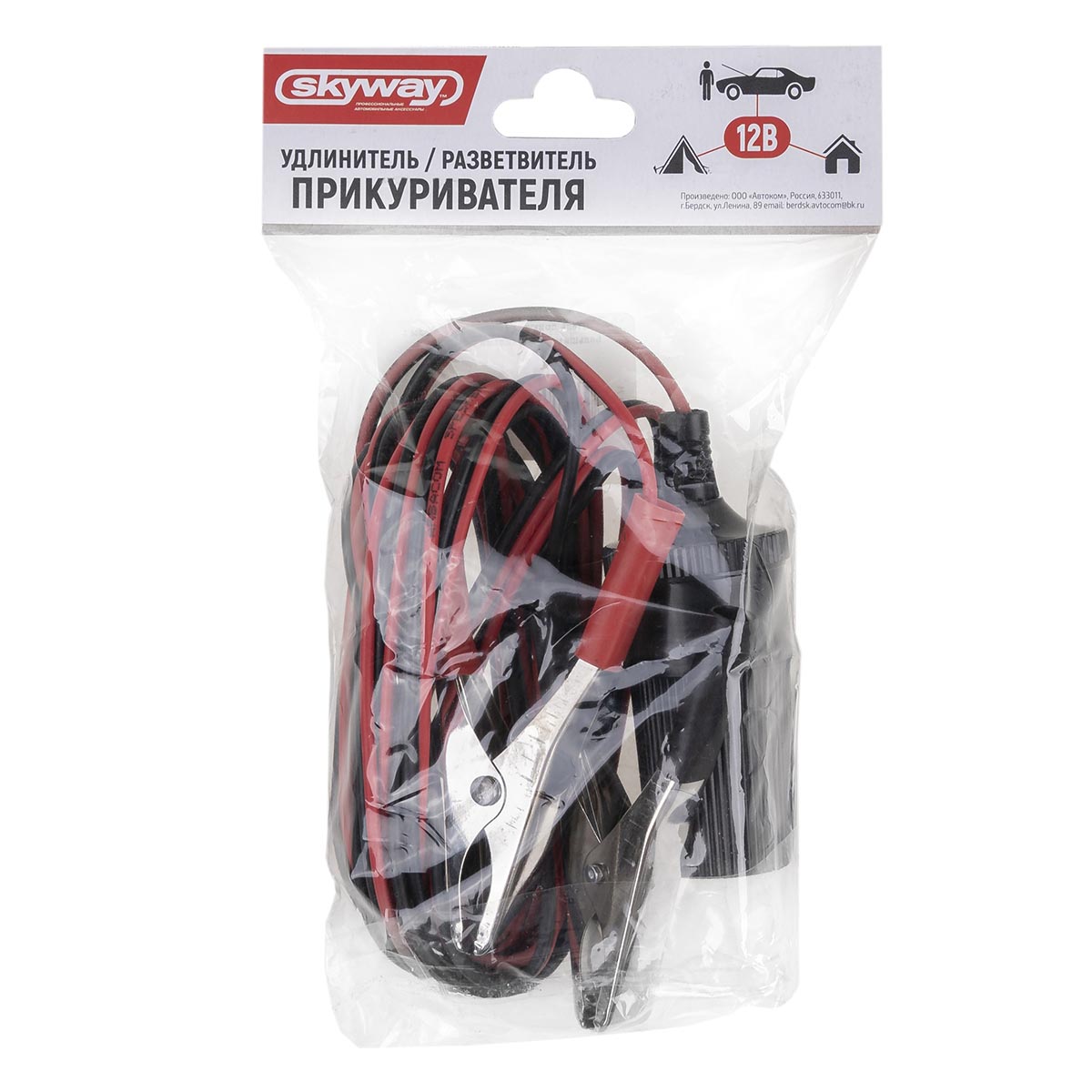 Удлинитель прикуривателя SKYWAY 3м с большими крокодилами - удлинитель прикуривателя с крокодилами длиной 3 метра. Предназначен для подключения электронных устройств, таких как зарядные устройства, автохолодильник, телевизор, автокомпрессор, автопылесос и другие устройства, потребляющие постоянный ток (DC) напряжением 12В, к аккумуляторной батарее автомобиля. Корпус гнезда автоприкуривателя разборный и изготовлен из ударопрочного пластика. Удлинитель автоприкуривателя является решением для подключения электрооборудования на удаленном расстоянии от автомобиля и незаменимым аксессуаром для автолюбителя.
